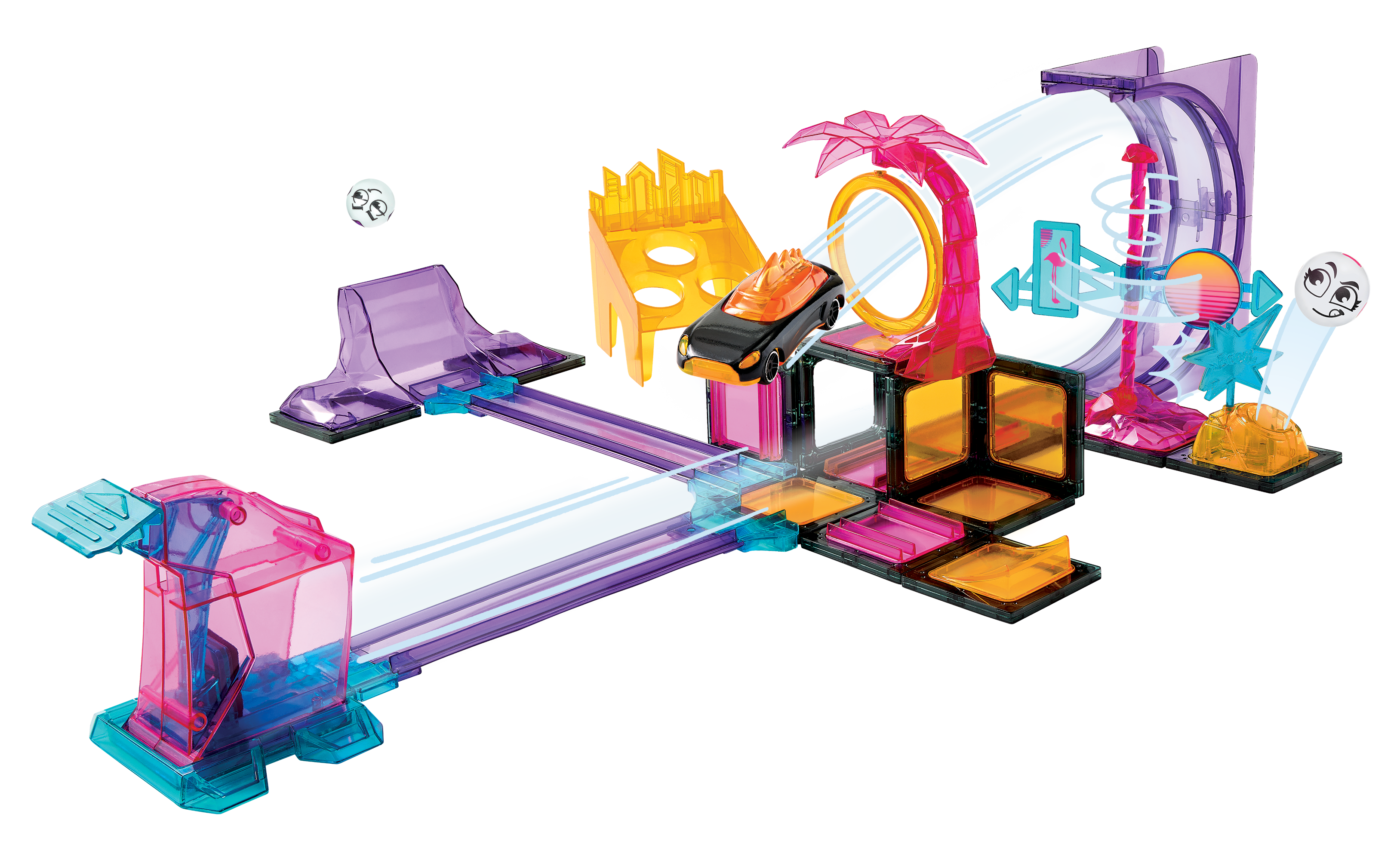 Mag Rush sets don’t just build—they blast. Packed with challenge elements made for your craziest trick shots and most epic runs, every piece cranks up the action.